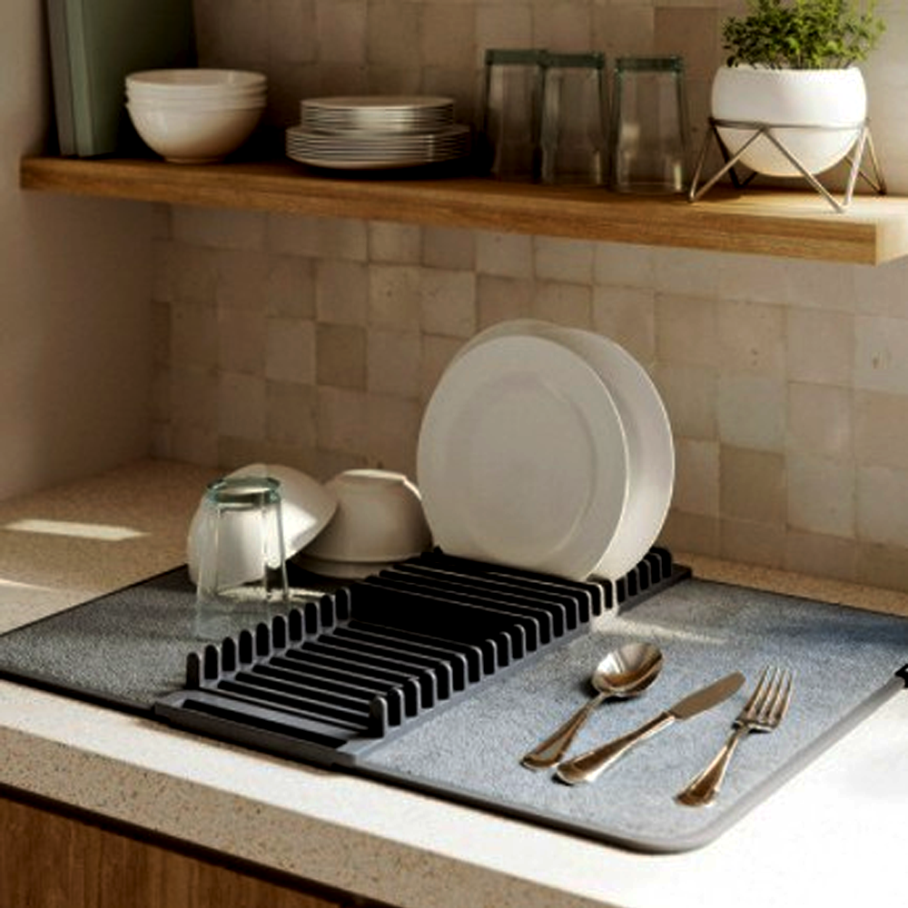 এই ডিশ ড্রায়িং ম্যাট শুধুমাত্র ড্রায়িং ম্যাট হিসেবে নয়, বরং স্টোরেজ ম্যাট হিসেবেও ব্যবহার করা যায়, যা আপনার প্লেট, গ্লাস, ডিশের ঢাকনা ইত্যাদি সুসংগঠিত রাখতে সাহায্য করে।